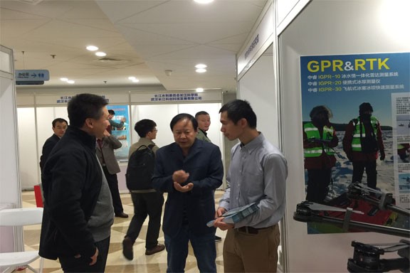 新技術成果裝備展示會場內,大連中睿科技發展有限公和中國水利水電科學研究院的聯合展位上,展出的冰水一體化雷達、無人機飛航測冰雷達和便攜式測冰雷達儀吸引了眾多與會代表參觀了解,詢問設備性能和技術指標,大連中睿科技發展有限公司副總經理、陳潔博士熱情的為與會專家和代表做了詳細介紹和說明。